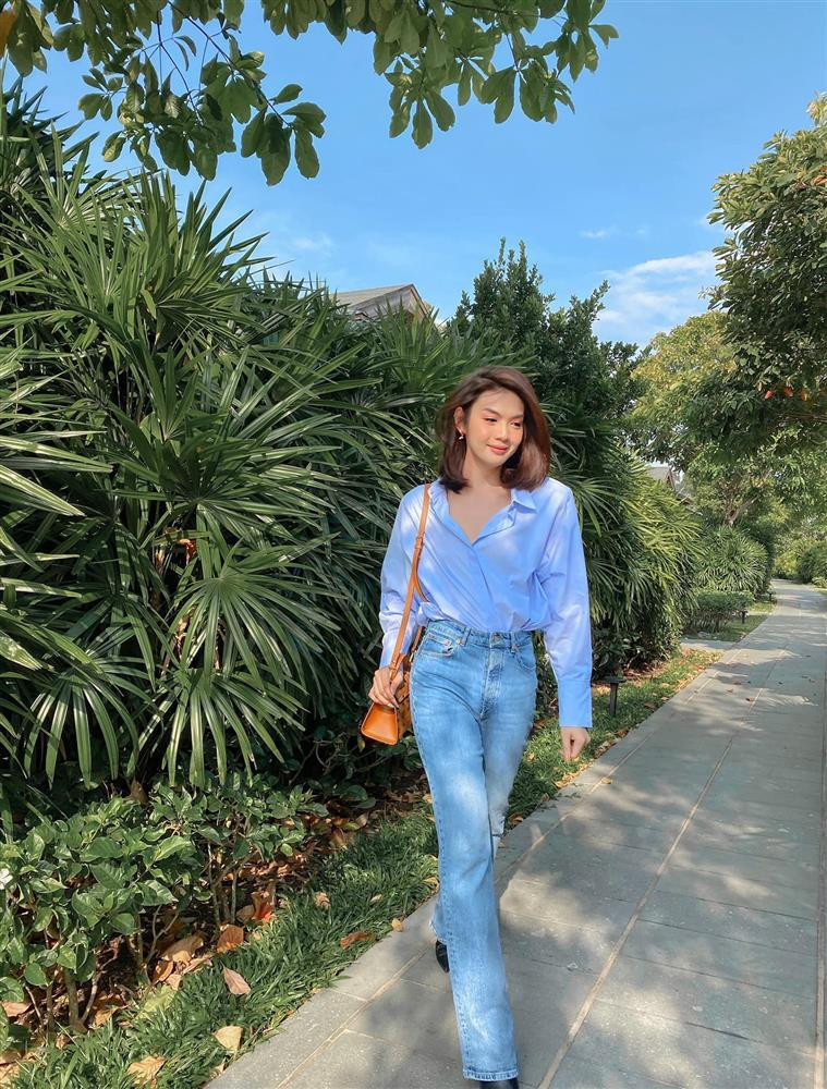 Vẻ đẹp sang trọng khi bới tóc cao, kết hợp với khuyên tai tinh tế. Là một beauty blogger và cực rành về mỹ phẩm nên Đào Bá Lộc luôn biết cách chăm chút, khiến bản thân đẹp lên mỗi ngày.