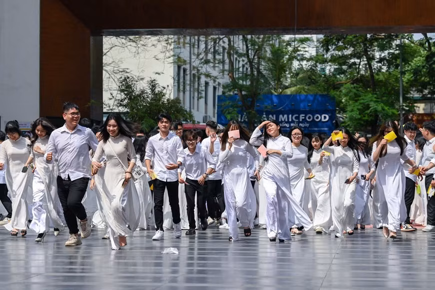 Dù hôm nay tiết trời Hà Nội nắng nóng, thế nhưng ngay từ sớm đã có rất đông học sinh lớp 12 đến trường để tham dự lễ bế giảng cuối cùng.