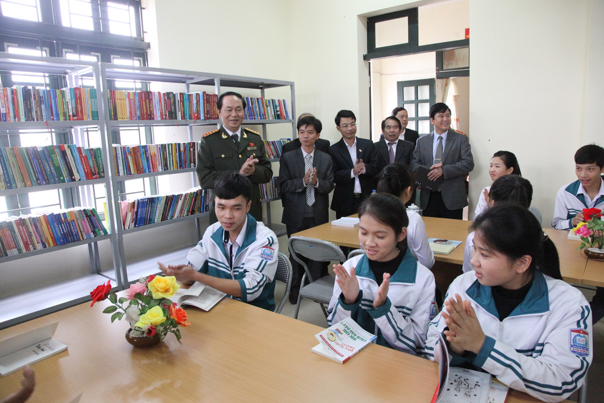 Chủ tịch nước Trần Đại Quang đi thăm các phòng học.