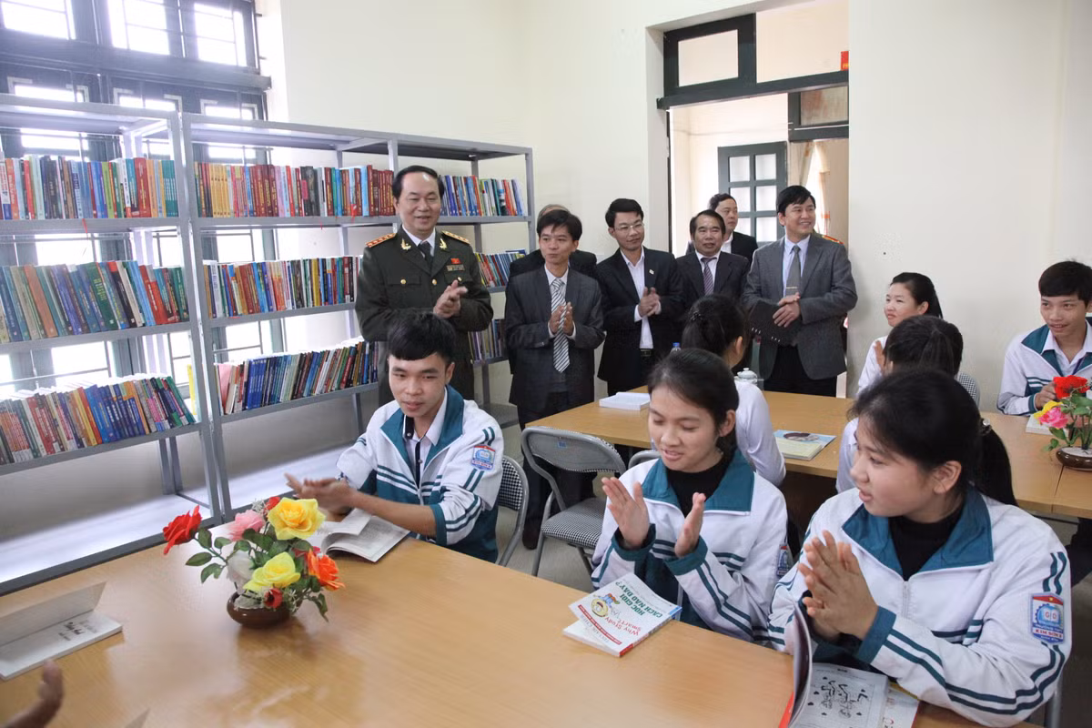 Bức ảnh Chủ tịch nước Trần Đại Quang khi còn làm Bộ trưởng Bộ Công an, nhân dịp về quê trong ngày Nhà giáo Việt Nam 20-11, đã ghé thăm trường THPT Kim Sơn B.