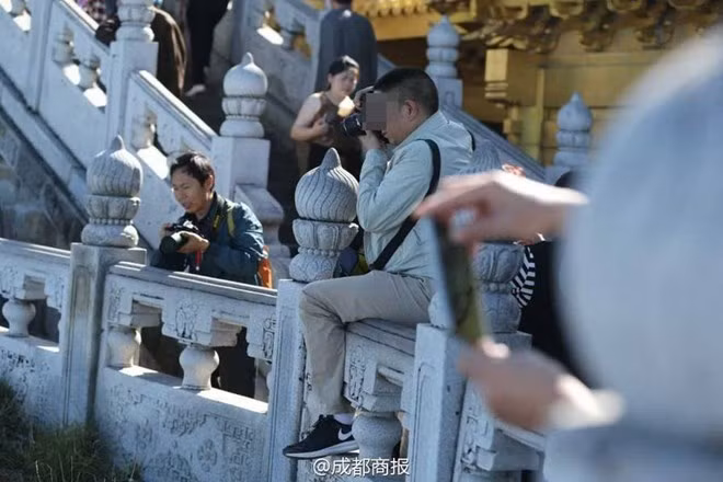 Leo lên một mỏm núi cao hơn để chụp ảnh. (Nguồn: QQ News)