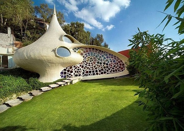 Vỏ ốc là nguồn cảm hứng cho rất nhiều tòa nhà ở Nhật Bản, Monte Carlo và Mexico. Ngôi nhà vỏ ốc Nautilus ở thành phố Mexico do kiến trúc sư Javier Senosiain thiết kế. Không chỉ có dáng vẻ bên ngoài độc đáo và khác biệt, không gian bên trong căn nhà còn lung linh như một bức tranh cổ tích. Kiến trúc sư đã tận dụng triệt để những yếu tố tự nhiên như đá lát, cỏ cây, ánh sáng để không gian sống thật sự thoải mái.