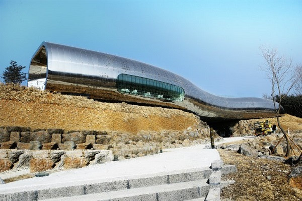 Nằm ở một khu khảo cổ lớn của Jeongok, phía nam Hàn Quốc, bảo tàng tiền sử Serpentine được xây dựng theo hình ảnh của loài rắn, mềm mại, uốn lượn hòa vào thiên nhiên. Bảo tàng được phủ lớp mạ crom hiện đại phản chiếu cảnh quan quận Jeongok. Một bức tường kính hai lớp mô phỏng cấu trúc da của loài bò sát. Ban đêm, ánh sáng chiếu xuyên qua những lỗ trên da tạo thành khung cảnh rực rỡ cho bảo tàng.