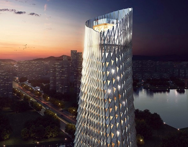 Ở trung tâm một khu đô thị mới quanh khu vực sông Doumen, RMJM đã thiết kế một tòa tháp cao 100m với hình ảnh một con cá khổng lồ vươn lên từ mặt nước. Các tấm nhôm đục lỗ bao bọc tòa nhà giống như một lớp da cá, che chắn ánh nắng mặt trời. Hình ảnh con cá nhảy lên tượng trưng cho sự phát triển nhanh chóng và thịnh vượng của Chu Hải. Du khách có thể chiêm ngưỡng toàn cảnh thành phố Chu Hải ngoạn mục và con sông lịch sử Doumen từ tầng cao nhất của tòa tháp.
