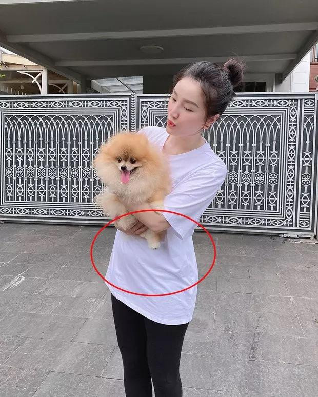 Trong thời gian mang thai, Bảo Thy khéo léo lựa chọn trang phục rộng rãi nhưng vẫn không qua nổi con mắt của các thánh soi.