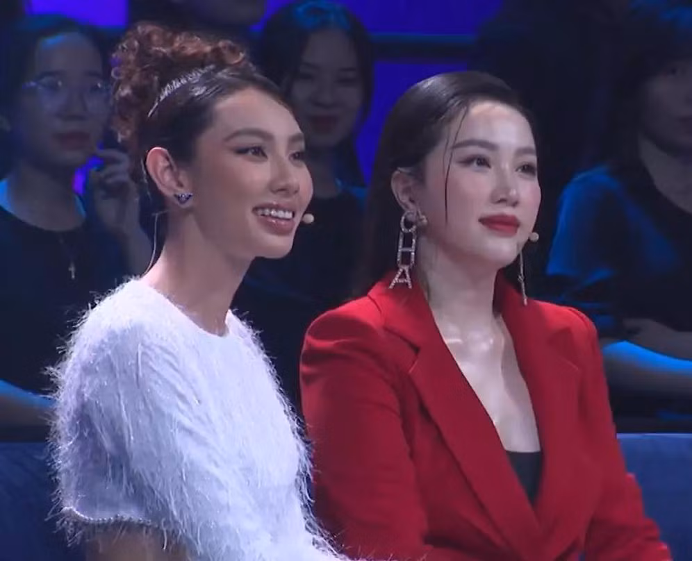 Là lần đầu tiên gặp nhau, khoảnh khắc "đọ sắc" của cặp mỹ nhân từ hậu trường đến trên sóng truyền hình khiến cư dân mạng không khỏi thích thú. Làn da trắng phát sáng giúp Bảo Thy trông trẻ trung và nổi bật trong mọi khung hình.