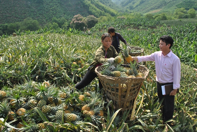 | Khoảng tháng 6, tháng 7 hàng năm bà con trên địa bàn xã Bản Lầu, huyện Mường Khương lại tấp nập bước vào mùa thu hoạch dứa. |