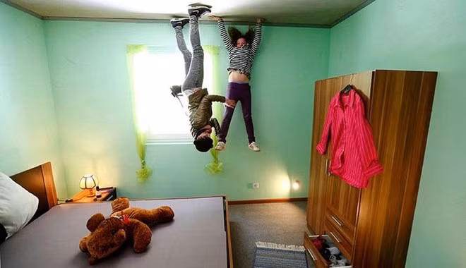 Khai trương năm 2012, ngôi nhà đảo ngược là một điểm du lịch nổi tiếng ở làng Tirol, Áo. Bên trong ngôi nhà, nội thất được dính chặt vào trần nhà, trong đó có cả một chiếc ô tô VW Beetle. Nhiều người cho rằng ngôi nhà có thể sập bất cứ khi nào mỗi lúc nhìn vào căn nhà.
