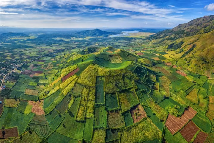 Núi lửa Chư Đăng Ya là một trong 10 ngọn núi đẹp nhất thế giới. Nơi đây nổi tiếng với cảnh quan độc đáo của các thửa ruộng bậc thang nhiều kích thước và hình thù đa dạng chắp vá thành “chiếc chăn lớn” bao phủ toàn khu vực.