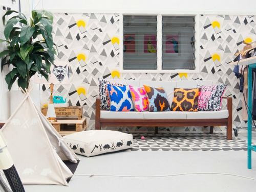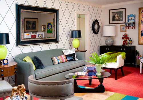 Những phòng khách tuyệt đẹp với giấy dán tường họa tiết hình học