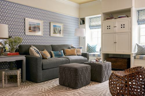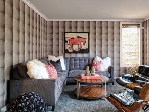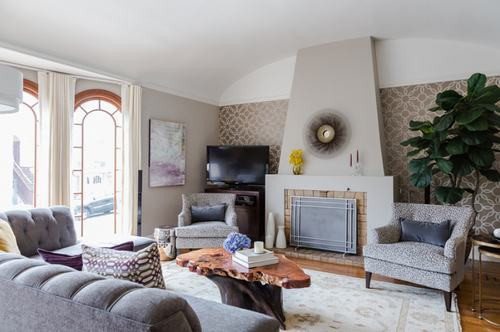Sử dụng giấy dán tường họa tiết hình học lên 1 hoặc 2 bức tường trong phòng khách để tạo nét mới mẻ nhưng không làm rối mắt. Đối với giấy dán tường nhiều màu bạn nên kết hợp với những bức tường xung quanh sơn màu trắng, để tạo điểm nhấn nổi bật. Bên cạnh đó, bạn cần thay đổi hoặc làm mới một số đồ nội thất trong phòng để sự kết hợp là hoàn hảo nhất.