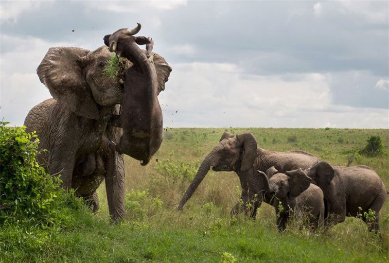 Trong khi đang tham quan vườn quốc gia Maasai Mara ở Kenya, nhiếp ảnh gia Kimberly Maurer đã tình cờ ghi lại được cảnh tượng cực kỳ tàn khốc trong thế giới động vật hoang dã. Đó là cảnh voi “điên” húc và giày xéo chết trâu rừng.