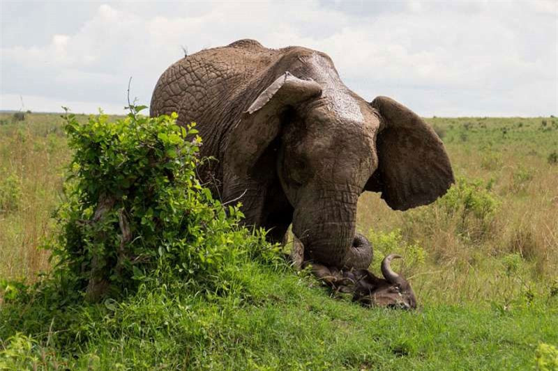 Vì cho rằng chú trâu rừng dám xâm nhập vào lãnh thổ của mình, nên con voi đã “nổi điên” trước khi húc văng đối thủ lên trời và giày xéo chú trâu tội nghiệp tới chết.