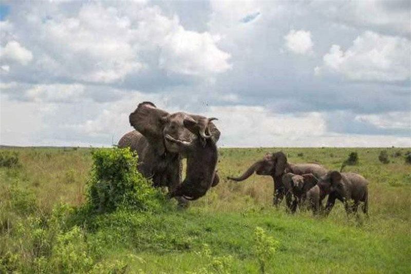 Trâu rừng chết thảm vì bị “voi điên” húc văng lên trời