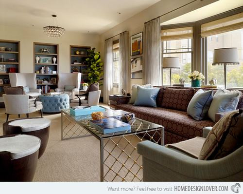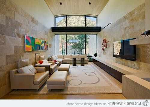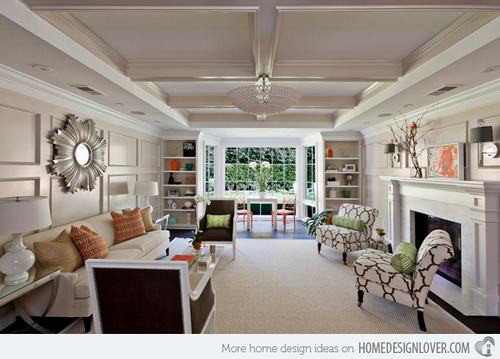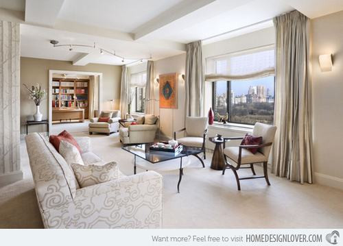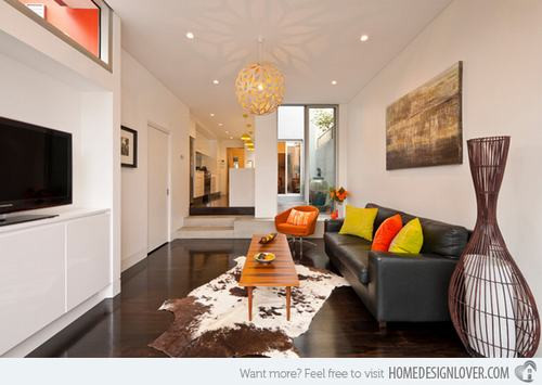 Một căn phòng dài và hẹp sẽ khiến chúng ta có cảm giác như đang đứng giữa hành lang hay một hẻm nhỏ, sẽ khó khăn để sắp đặt, bài trí nội thất hơn những phòng khách có dạng vuông vức thông thường. Mẹo thiết kế căn phòng hẹp đó là để lối đi nằm ở một phía sát tường phòng. Những mẫu phòng dưới đây sẽ giúp bạn bố trí cửa ra vào, cửa sổ cũng như đồ nội thất trong phòng hợp lý hơn.