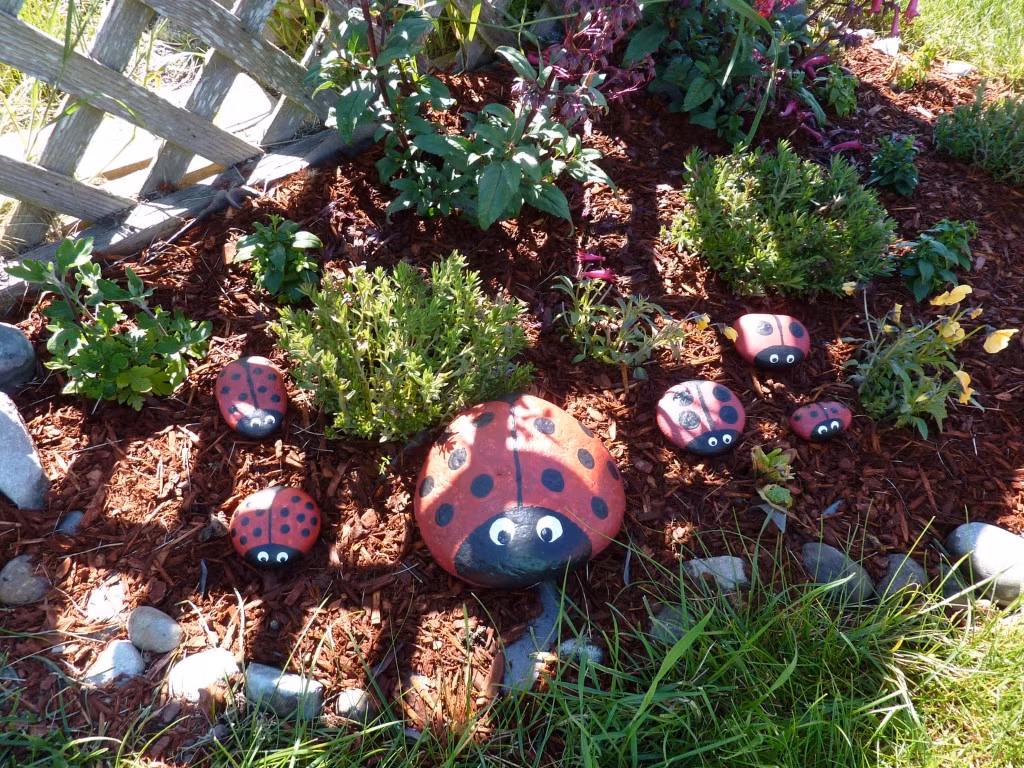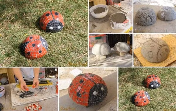 Vẽ bọ cánh cam trang trí vườn từ những viên đá sỏi.