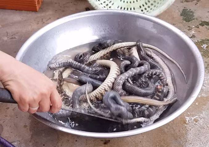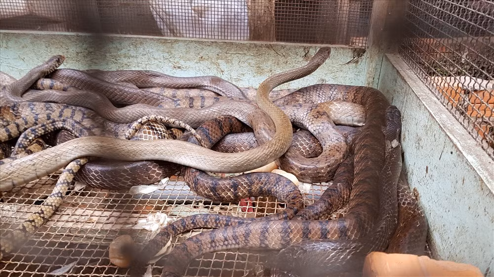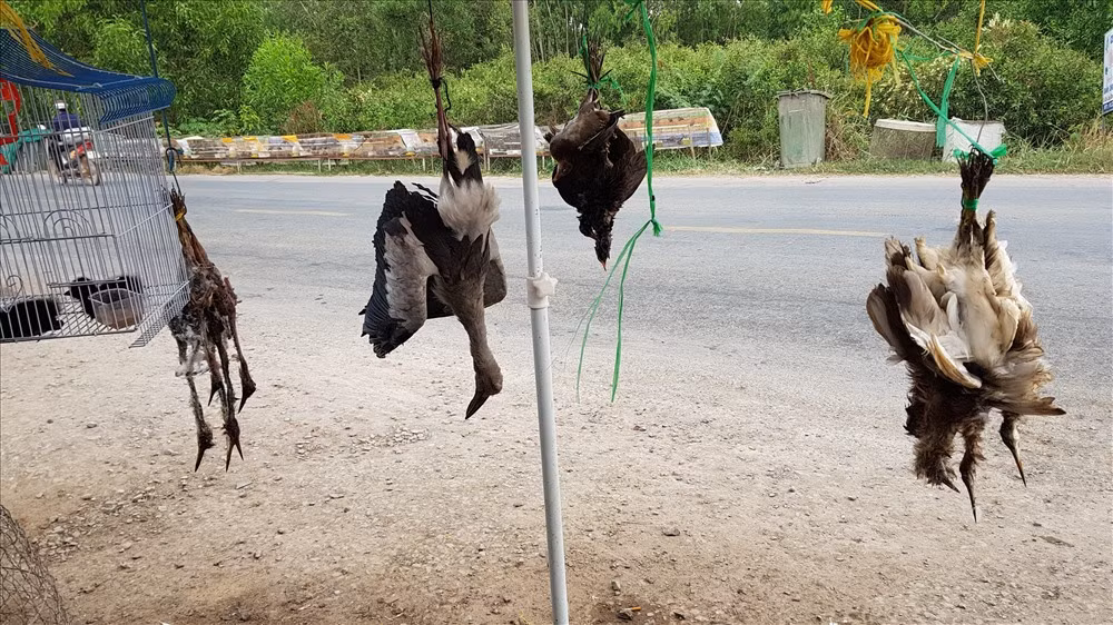 | Một tiểu thương đang chào hàng du khách các loại thú rừng chị ta buôn bán. |