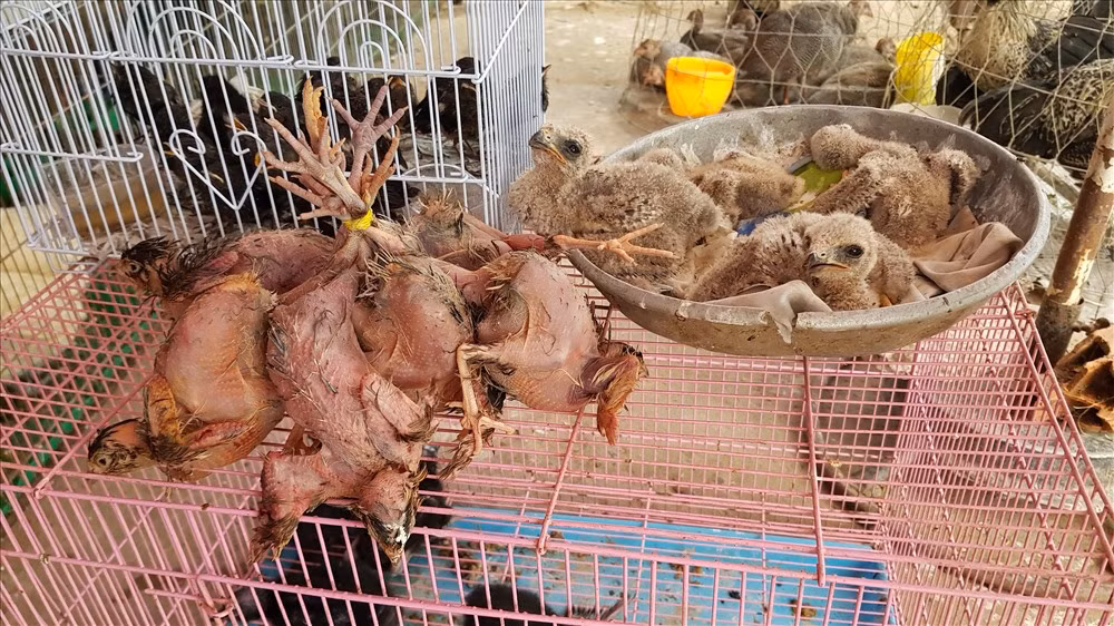 | Một quầy hàng bán thịt thú rừng công khai tại chợ Tam Đảo. |
