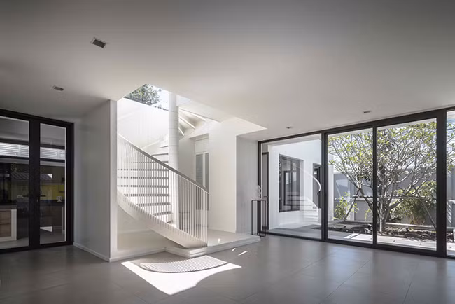 Cầu thang xoắn được lựa chọn vừa tạo tính thẩm mỹ vừa tiết kiệm được diện tích.