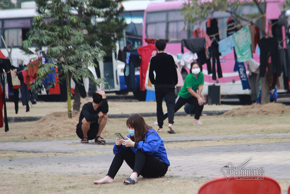 "Lực lượng ở đây gồm 9 người bên y tế, 15 người bên quân đội và 3 công an phục vụ 24/24", đại diện lực lượng chức năng khu cách ly cho biết. Cùng ngày, Bí thư Tỉnh uỷ Hải Dương Phạm Xuân Thăng cùng đoàn công tác đã tới để kiểm tra công tác cách ly y tế của mọi người... (Người xuống sân để hóng gió và tập thể dục)