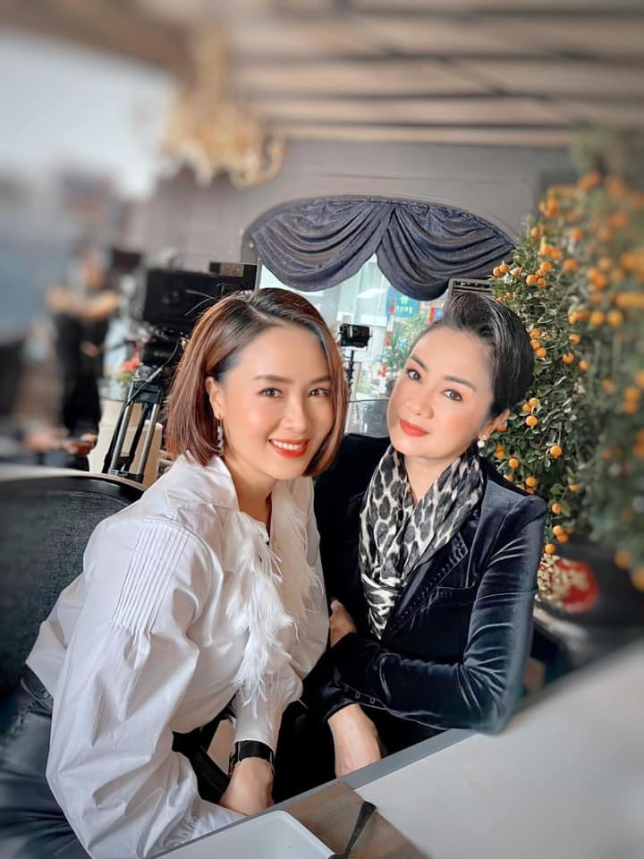 Là tình địch trên phim nhưng Bạch Cúc và Diễm Loan ngoài đời cũng có những khoảnh khắc thân mật ở hậu trường thế này.