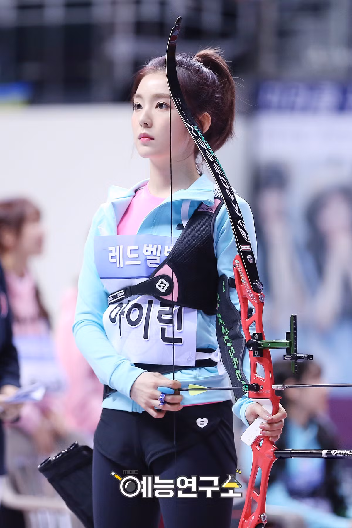 Ngoài Tzuyu, một thần tượng Hàn khác cũng nổi tiếng bắn cung giỏi là Irene (Red Velvet). Tương tự đồng nghiệp, Irene là tay bắn chủ lực của Red Velvet, luôn giành được điểm 9 hoặc 10 khi thi bắn cung.