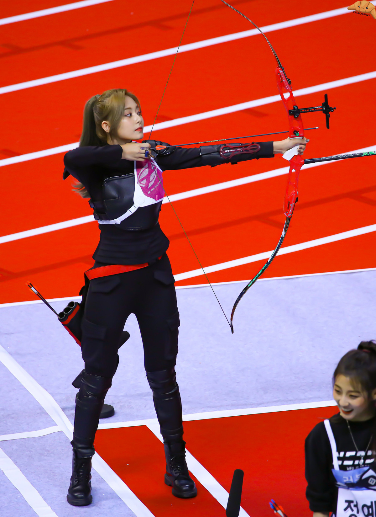 Thực tế, đây là hình ảnh khi Tzuyu dự thi môn bắn cung tại ISAC 2019. Khi thi đấu, thay vì bộ đồng phục thể thao ban tổ chức cung cấp, người đẹp sinh năm 1999 đã thay sang bộ trang phục lấy cảm hứng từ nữ chiến binh trong phim thần thoại. Thời điểm chương trình lên sóng, bộ ảnh trong trang phục màu đen của Tzuyu cũng gây sốt mạng xã hội Hàn Quốc.