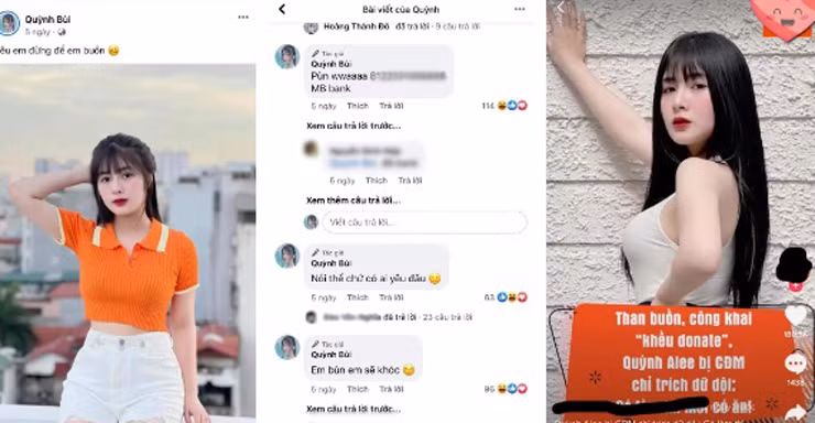 Hồi tháng 7/2021, trên trang cá nhân, cô nàng phải đăng bài xin lỗi cộng đồng mạng và bày tỏ hối hận vì phút đùa vui ngẫu hứng. Trước đó, cô đã đăng ảnh kèm theo caption mô tả tâm trạng đang buồn nhưng lại thêm số tài khoản ngân hàng ở phần bình luận. Hành động này khiến cô bị chỉ trích “câu donate”. Trong bài đăng xin lỗi, Quỳnh khẳng định đó đơn thuần là hành động “vui đùa vu vơ để mọi người tương tác và nói chuyện cùng mình trong thời điểm đó”. Cô thừa nhận bản thân cũng không ý thức được hành động trêu đùa sẽ dẫn đến hậu quả như vậy. Đồng thời, Quỳnh Alee cũng chia sẻ đã tự rút được bài học và rất mong người hâm mộ có thể bỏ qua cho cô vì trò đùa trên.