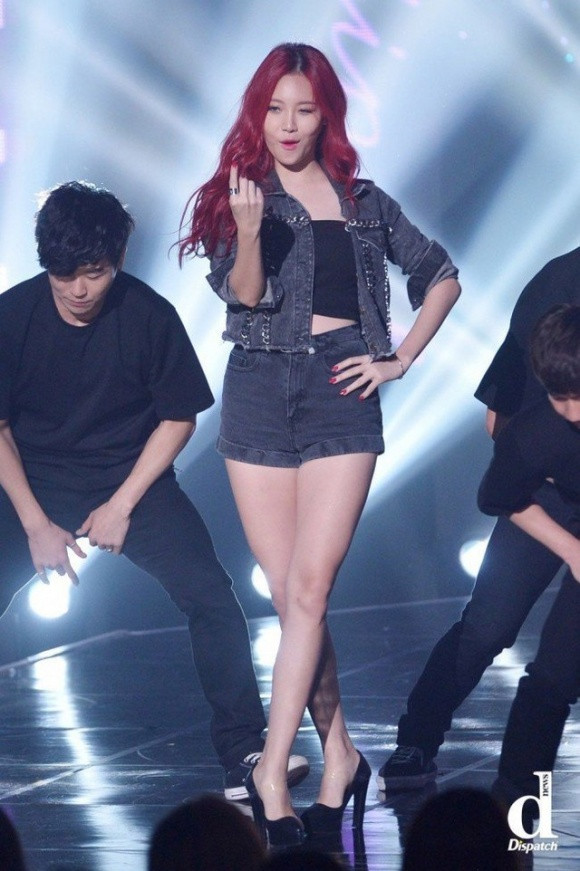 Yura (Girl's Day) luôn diện những trang phục ngắn để khoe đôi chân thon trên sân khấu.