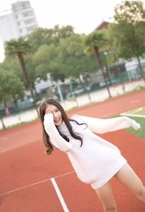 Tuy nhiên, trang phục của nữ sinh này là khá đặc biệt. Nữ sinh chỉ diện một chiếc áo dài màu trắng chùm vừa hết vòng ba và không mặc quần.