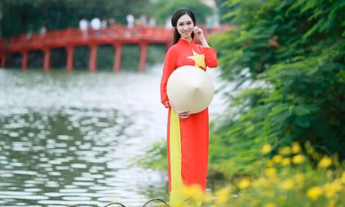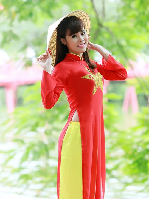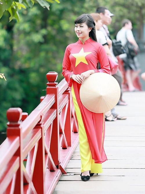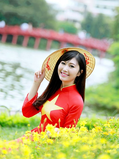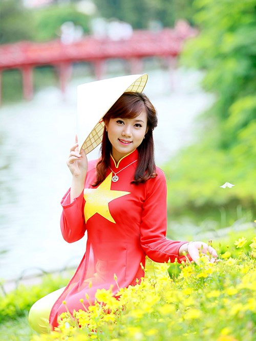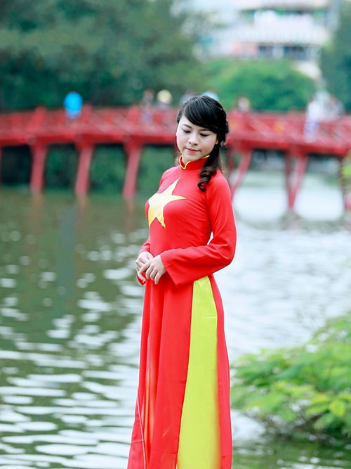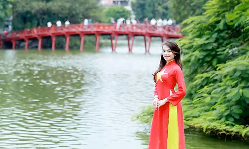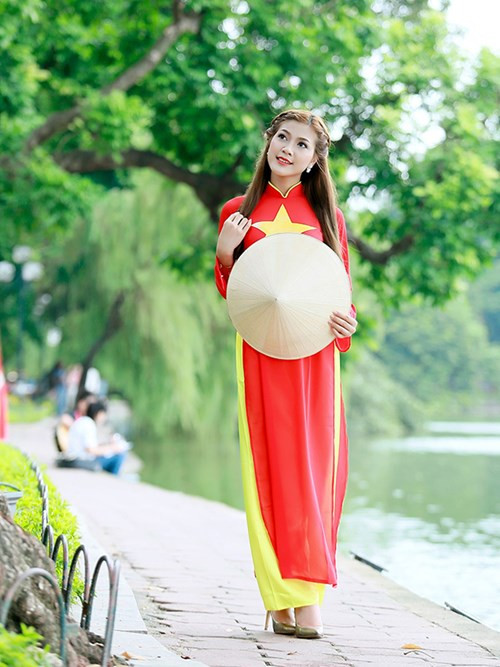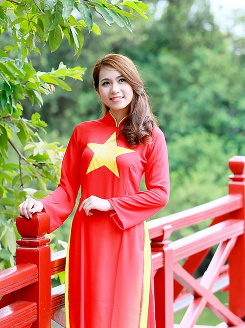 Nữ sinh Hà thành khoe sắc với áo dài cờ đỏ sao vàng