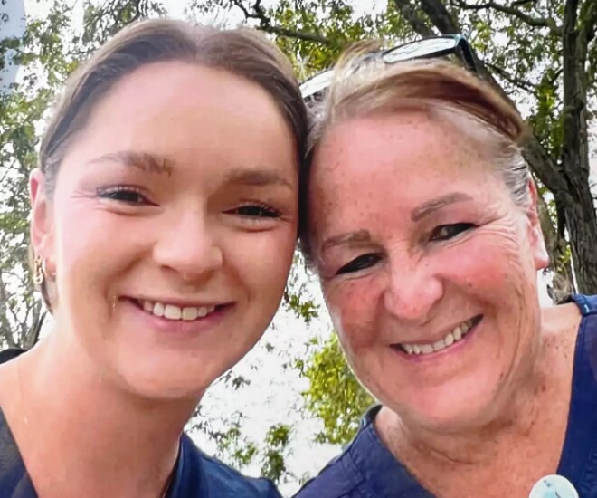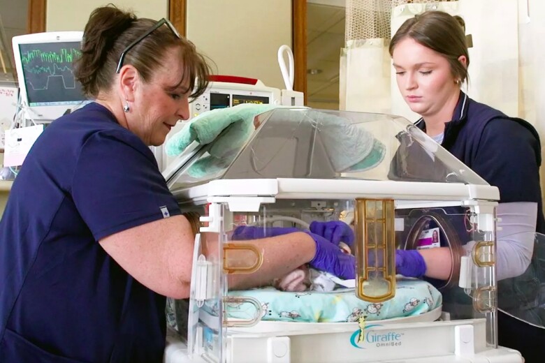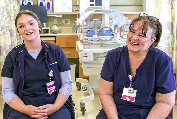 Hai mẹ con Stacey và Hannah Giese khi là y tá tại NICU của Bệnh viện Nhi đồng HSHS St. Vincent ở Green Bay, Wis. (Ảnh: Bệnh viện Nhi đồng HSHS St. Vincent)