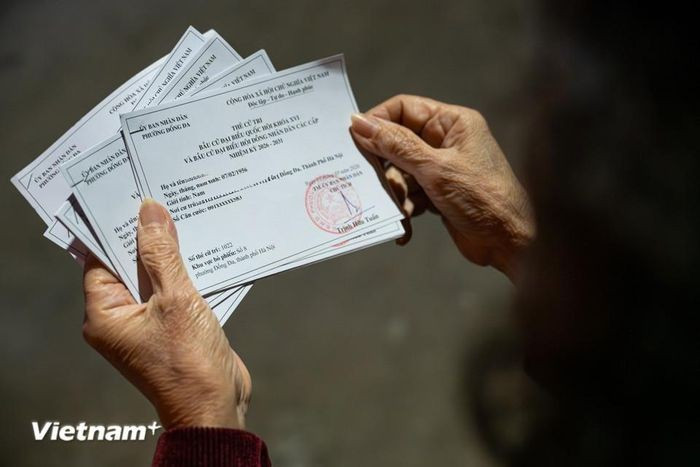 Đến thời điểm này, tổ bầu cử đã hoàn thành việc phát thẻ cho các cử tri trong toàn khu vực. Tổ bầu cử vẫn tiếp tục rà soát danh sách, cập nhật các trường hợp chuyển đi, chuyển đến để bảo đảm không bỏ sót quyền bầu cử của người dân. (Ảnh: Minh Sơn/Vietnam+)
