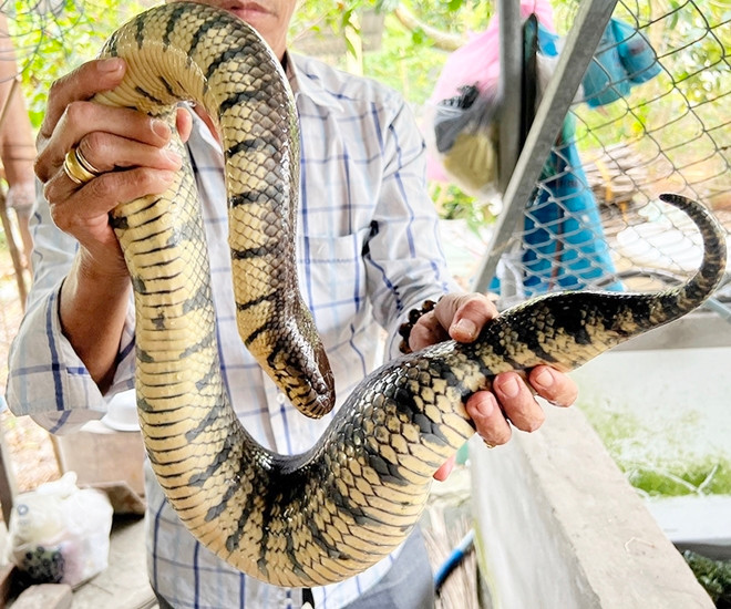 Hiện, ông Long có khoảng 100 con rắn bố mẹ, mỗi con nặng từ 2-4kg. Hằng năm, chúng đẻ gần cả nghìn con rắn con. Giá bán rắn giống được ông Long bán ra thị trường từ giá 70.000-200.000 đồng/con tùy theo độ lớn, cho doanh thu xấp xỉ 1 tỷ đồng/năm.