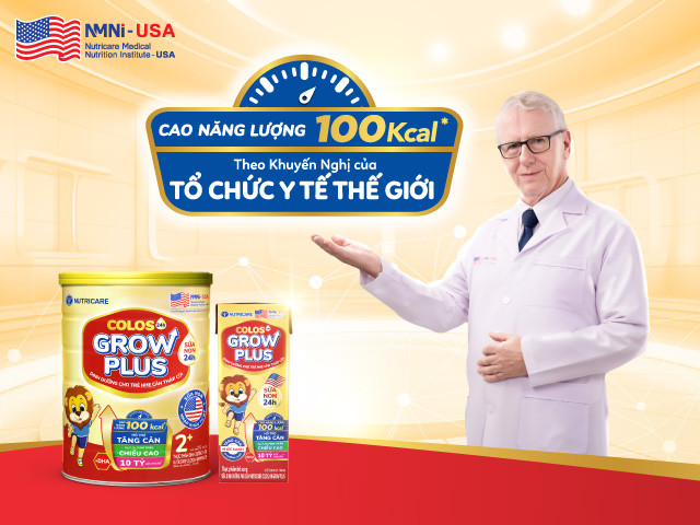 Nutricare Colos24h Grow Plus 2+ với công thức Cao năng lượng 100 kcal theo khuyến nghị của Tổ chức Y tế Thế giới (WHO) giúp trẻ tăng cân cao khỏe, bắt kịp đà tăng trưởng