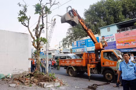 Bức tường cao gần 4m rộng hơn 3m gần tòa nhà đại diện phía Nam Bộ Công thương bị ông Phó chủ tịch quận 1 Đoàn Ngọc Hải yêu cầu đập bỏ.