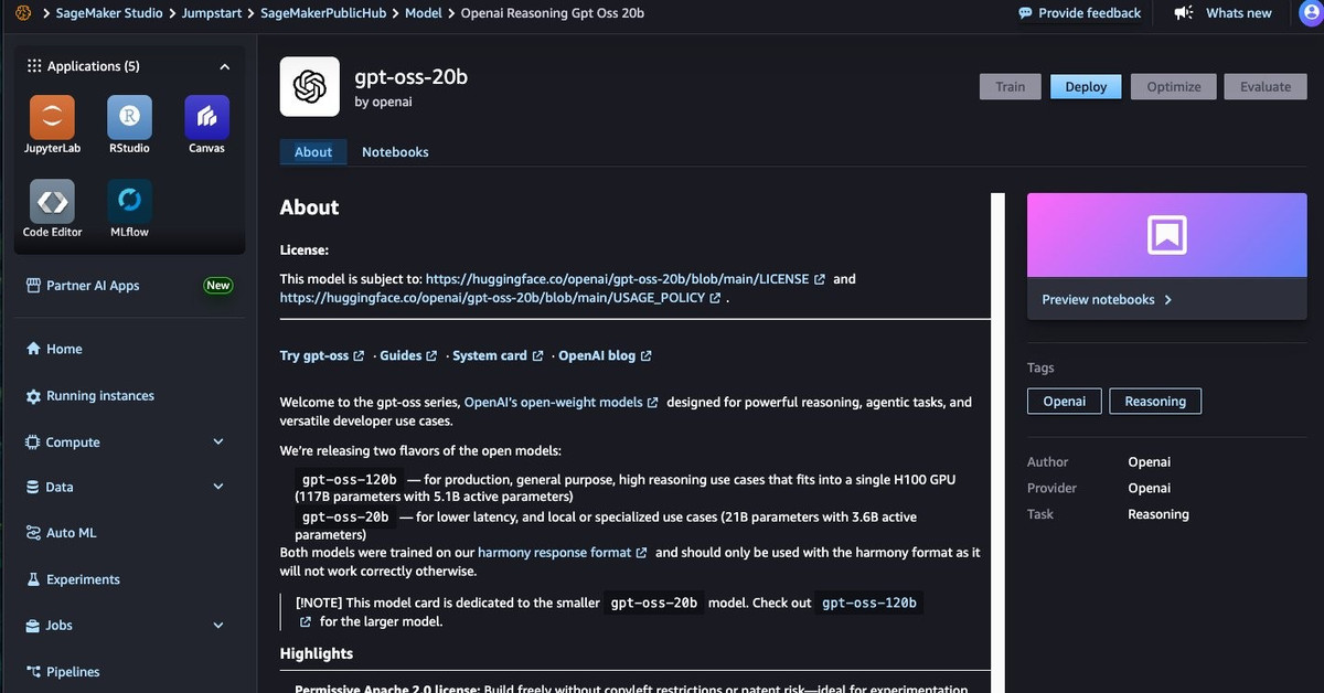 Mô hình gpt-oss-20b được bán trên sàn thương mại điện tử Sage Maker.