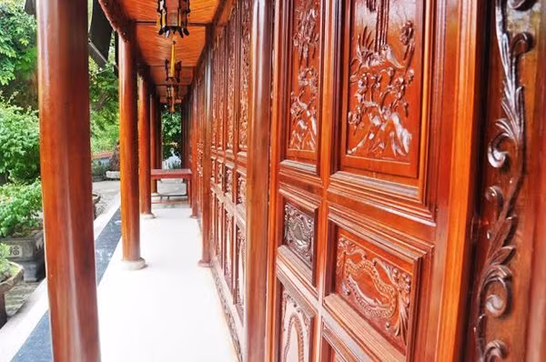 Phía bên trong khu biệt phủ, khi tận mắt chứng kiến mới cảm nhận được sự nguy nga chẳng khác nào cung vua phủ chúa ngày xưa, với những tượng gỗ, nhà rường gỗ quý hiếm.