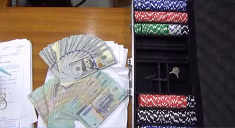| Các con bạc bị bắt quả tang trên bàn chơi bạc. |