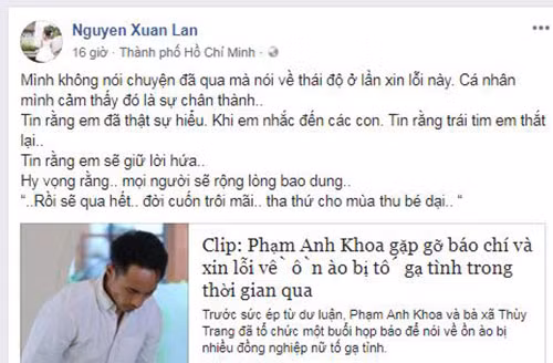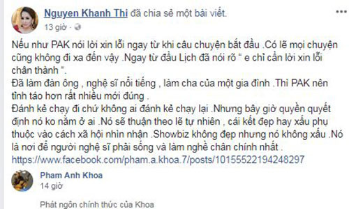 | Hàng loạt sao Việt lên tiếng sau lời xin lỗi của Phạm Anh Khoa. |