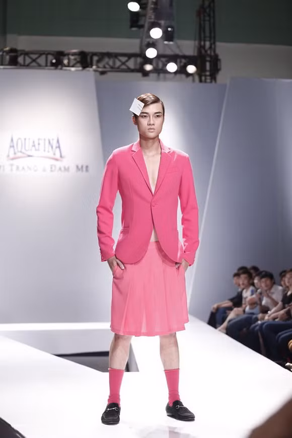 | Hình ảnh mẫu nam mặc váy lên sân khấu trình diễn vừa bị dư luận chỉ trích nặng thời gian vừa qua. |