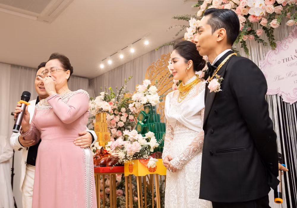 Bà cũng dành của hồi môn cho Khánh Thi là 12 cây vàng với mong muốn vợ chồng cô làm vốn kinh doanh và tiếp tục xây dựng tổ ấm hạnh phúc sau này.