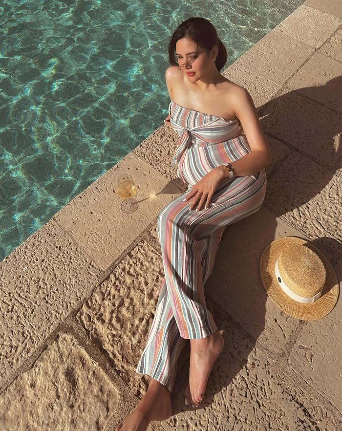 Có thể thấy, dù bụng bầu đã to vượt mặt nhưng Phanh Lee vẫn giữ được thân hình gọn gàng, phần vai và xương quai xanh lộ rõ. Sắc mặt nữ diễn viên tươi tắn, rạng ngời, cho thấy cô có một thai kỳ khỏe mạnh, vui vẻ.