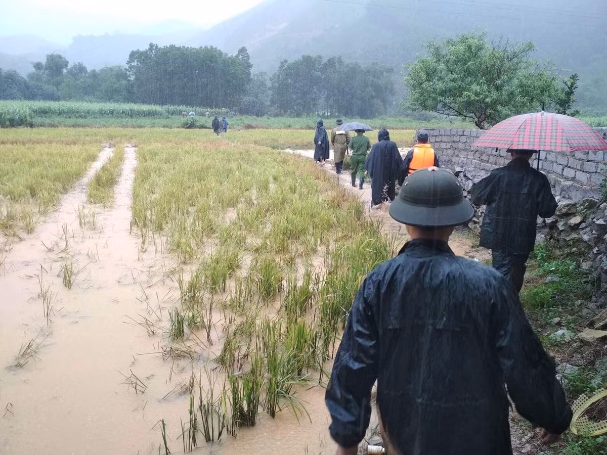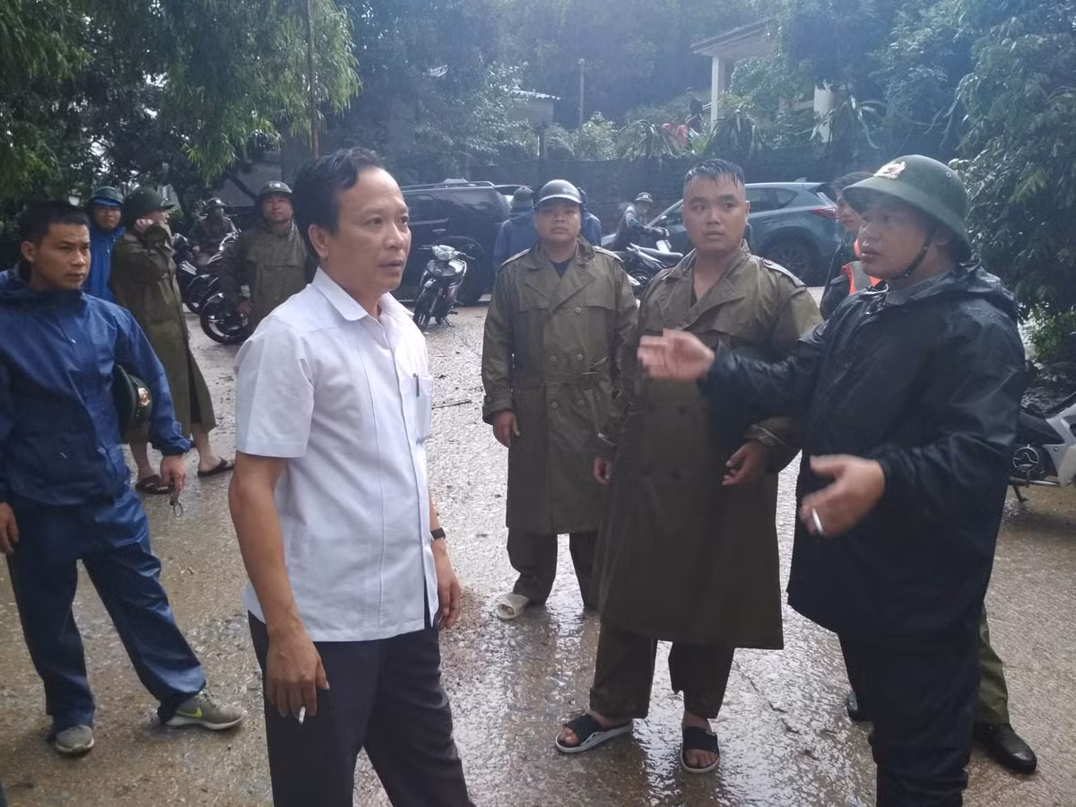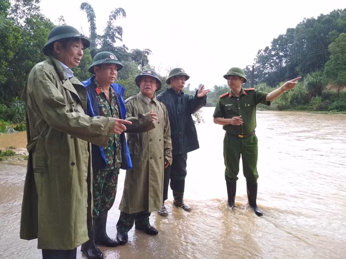 | Dòng nước lũ dâng cao tại huyện Hoành Bồ. |