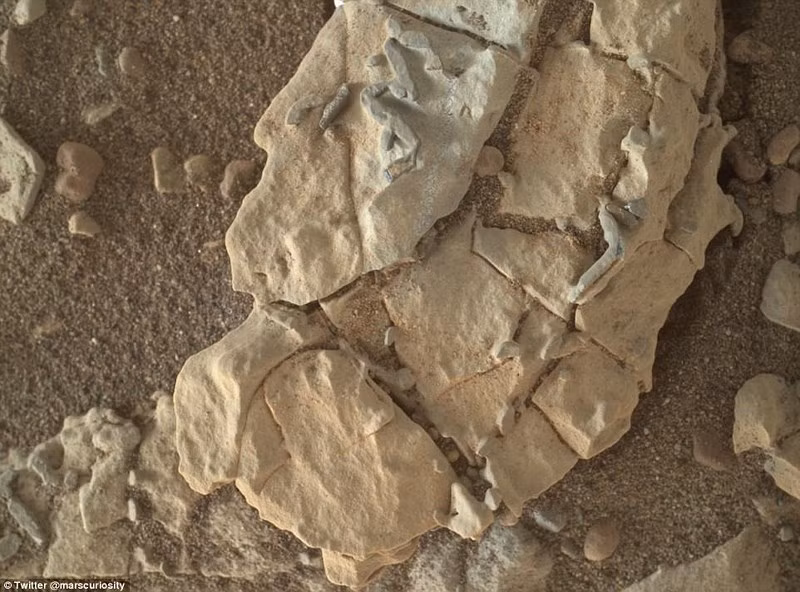 Theo hình ảnh được chia sẻ trên mạng Twitter trong tuần này của NASA cho thấy những vật thể hình que này nằm trên nhiều tản đá trên sao hỏa. Sau khi được chia sẻ, có rất nhiều ý kiến bàn luận về những vật thể kỳ lạ này. Một số ý kiến cho rằng đó là vết bánh xe, hóa thạch khủng long ngoài vũ trụ, giun, hay thậm chí dấu vết của người tuyết.