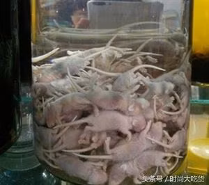 Rượu ngâm bằng chuột là thức uống đặc sản ở Quảng Đông, Trung Quốc. Nguyên liệu được chọn là những con chuột non mới sinh, còn chưa mở mắt và rượu gạo thông thường. Người dân địa phương cho biết, rượu chuột ngoài tác dụng bổ máu, tiêu bầm còn có thể giúp chống lão hóa, kéo dài thanh xuân.