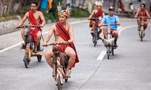 Những chiếc xe phá cách của bộ lạc Ifugao có thể đạt vận tốc khá lớn khi xuống dốc giờ đây đã trở thành một nét du lịch của địa phương. Du khách đến đây có thể trải nghiệm cảm giác mạnh khi xuống dốc không phanh bằng chiếc xe đẩy siêu độc này.