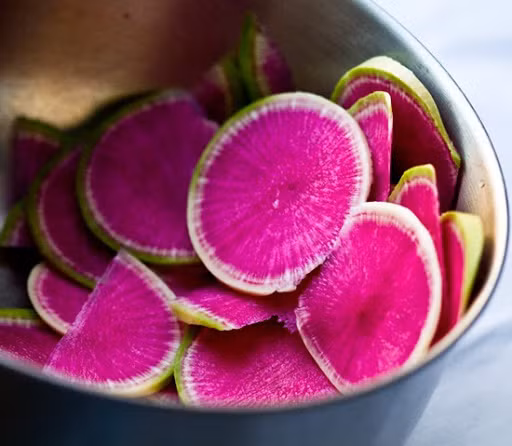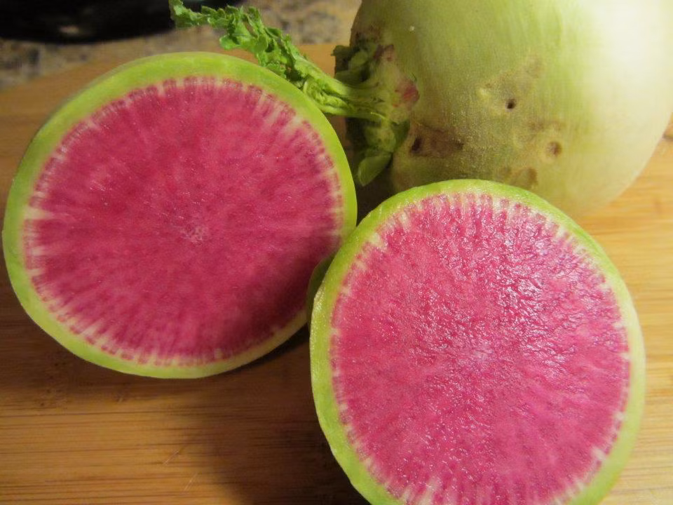 (Kiến Thức) - Với bề ngoài giống dưa hấu, loại củ cải này có ruột màu hồng sáng hết sức bắt mắt và khá được ưa chuộng trên thị trường.