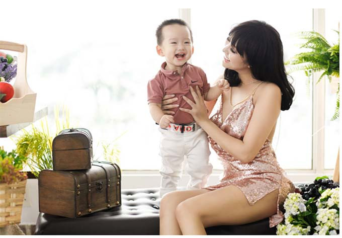 | Phi Thanh Vân và con trai. |