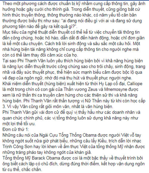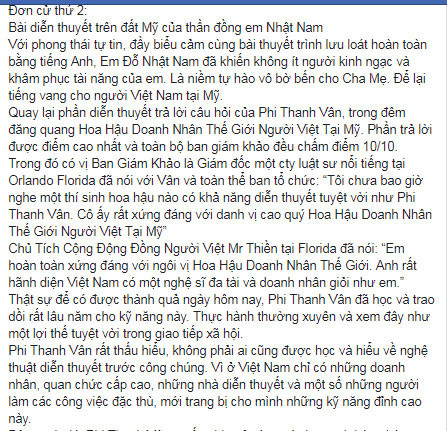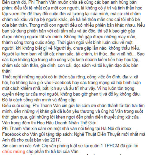 | Tâm thư khá dài dòng của Phi Thanh Vân. |